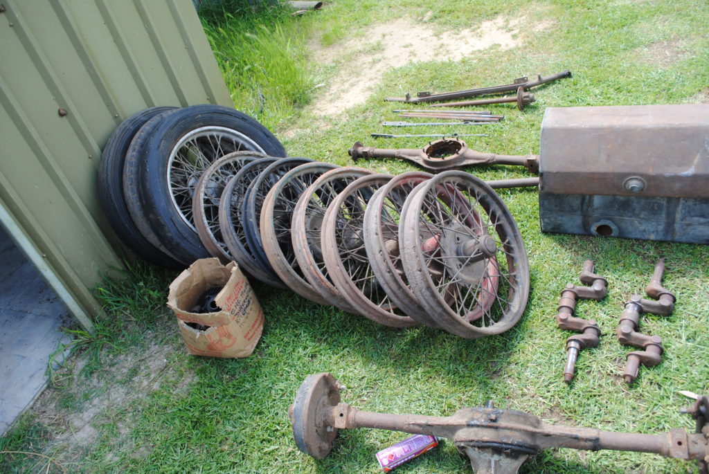 There are over 100 photos of these parts on a memory stick which can be sourced from me. In this collection is included engine blocks and parts; steering columns and steering box parts; wire wheels; cycle guards; gearboxes; electrical parts, front ends and lots more.