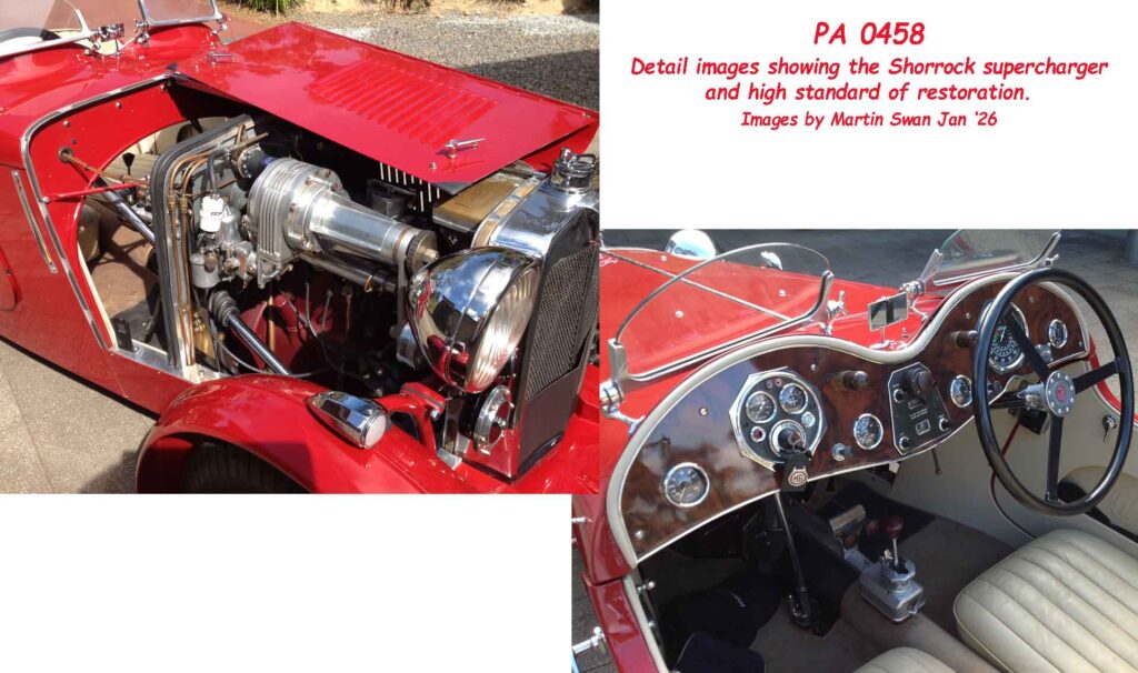The car was registered AYT 407 (its’ UK no.) in Dec. 2011. On going improvements have been made over the ensuing years with reco’d radiator and water pump added in 2012, supercharger set up by John Hunting in 2013, complete mechanical rebuild in 2015/6 including new block, crank and rods, repainted red in 2017 with cycle guards and new leather trim and in 2018 a new fuel tank with quick release cap.